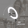 Equipped with multiple color temperature modes, including warm, neutral, and cool lighting, the ring light allows customization for different environments and creative needs. The sturdy tripod stand ensures stability, while the 360° rotating phone holder offers flexible positioning for hands-free use. Powered via USB connection, it is compatible with laptops, power banks, and adapters, making it convenient for indoor and outdoor use.