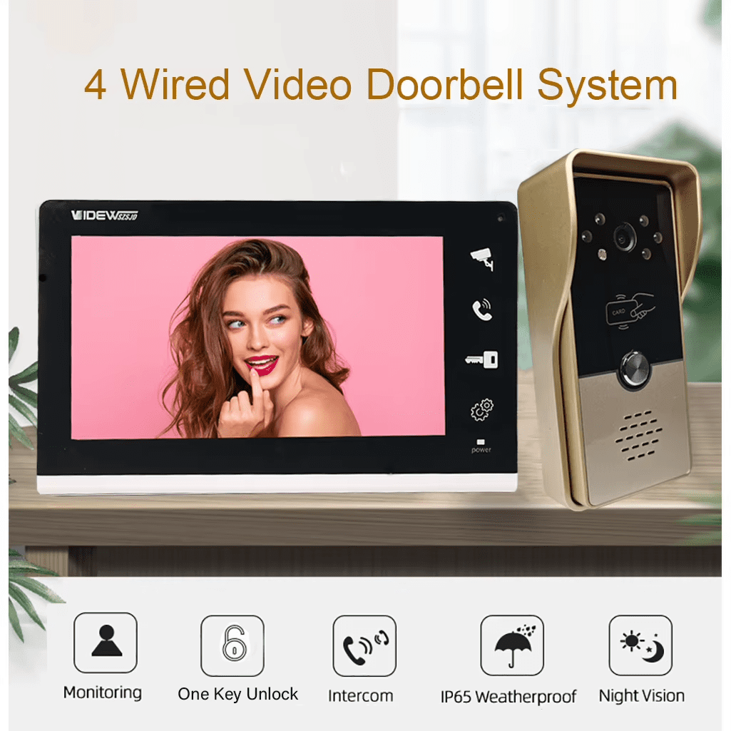 The 4-Wire Video Intercom System is a reliable and modern home security solution, designed for villas, apartments, and private residences. Featuring a 7-inch indoor LCD monitor and an IP65-rated waterproof outdoor camera, this system allows you to see, speak with, and grant access to visitors from the comfort of your home.