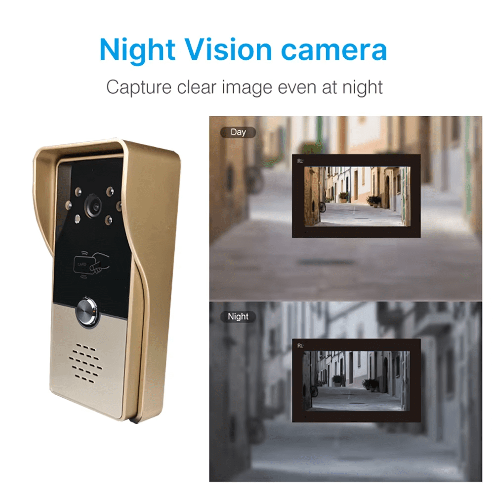 The high-resolution 1080p camera provides clear video quality, even in low-light conditions thanks to infrared night vision. The two-way audio system enables real-time communication, while the remote unlocking function lets you open the door directly from the monitor. Built with a durable aluminum alloy and ABS housing, the system is designed to withstand harsh weather.