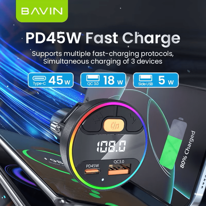 The BAVIN PC2079 45W PD + QC 3.0 Ultra-Fast MP3 Car Charger is a multifunctional powerhouse designed to modernize your vehicle instantly. First, this device is more than just a charger; it is a comprehensive 45W MP3 car charger that combines ultra-fast power delivery with advanced audio streaming capabilities. Consequently, it is the perfect upgrade for anyone who wants to keep their devices charged and their music playing seamlessly while on the road.