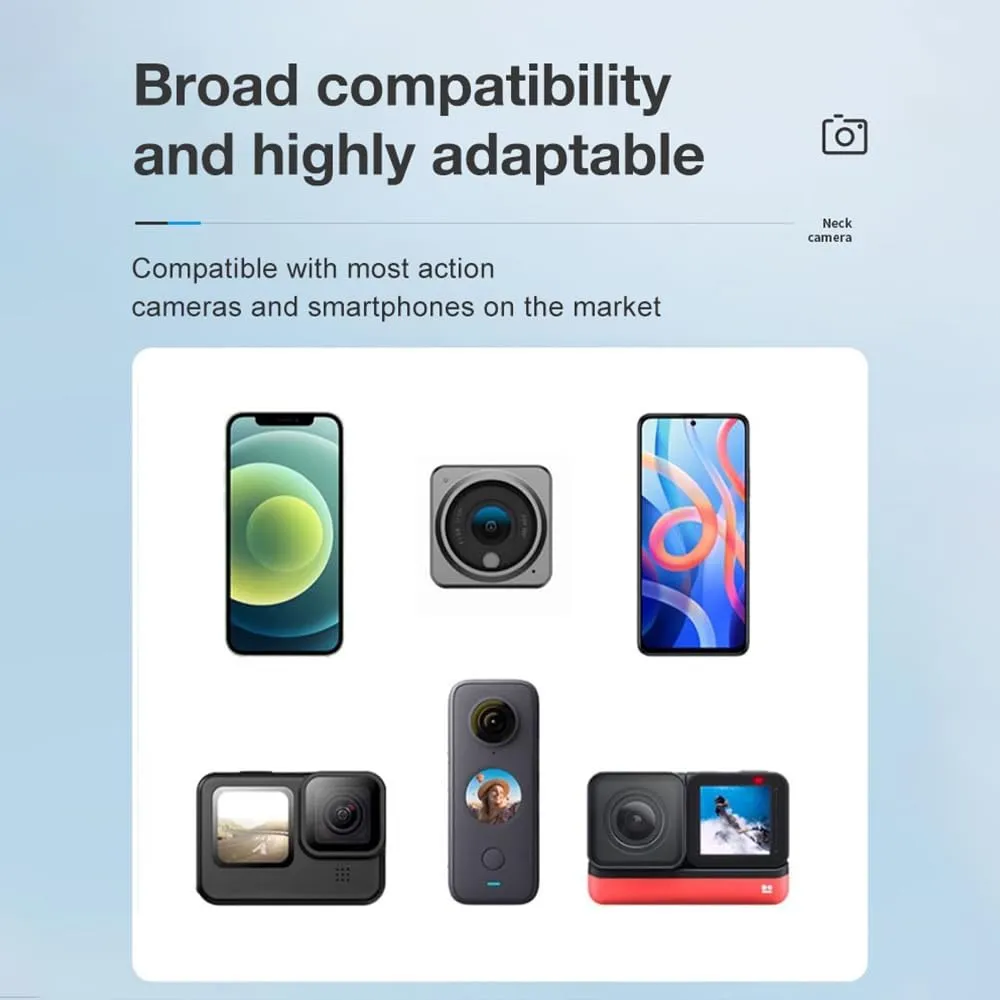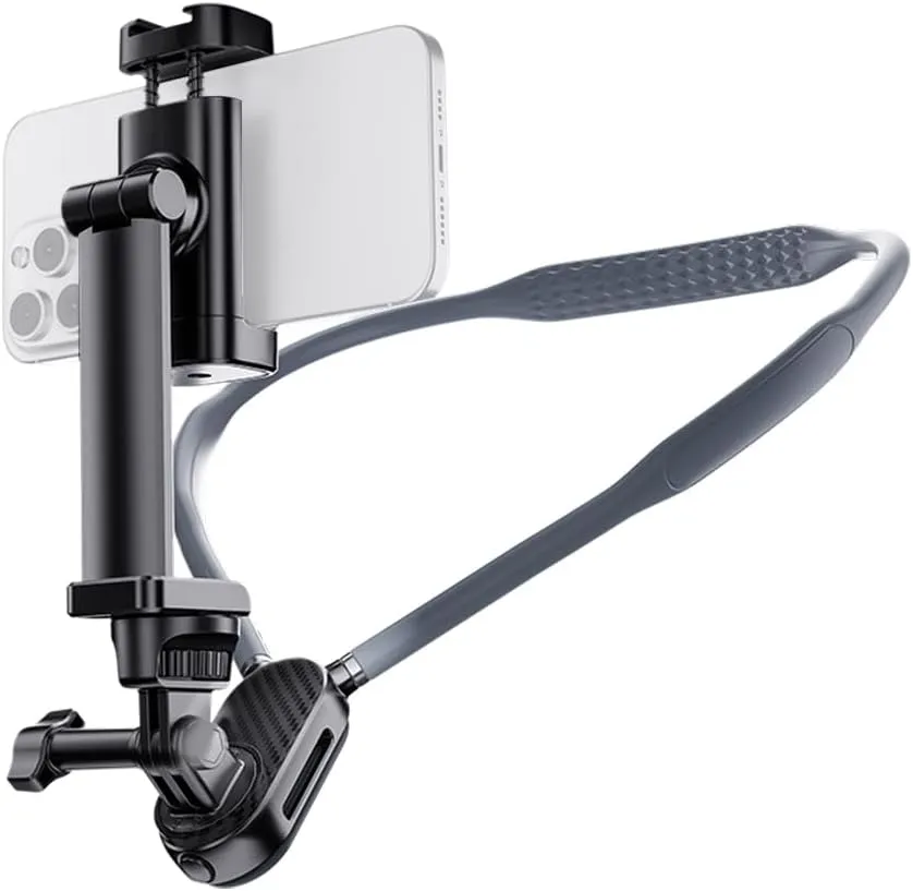 Silicone neck mount with 1/4″ screw for GoPro and smartphones. Comfortable, adjustable, and ideal for POV video recording.