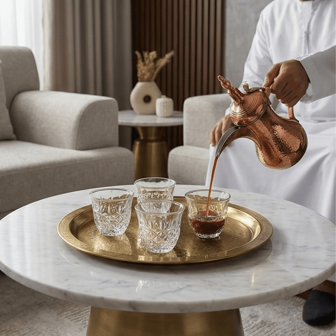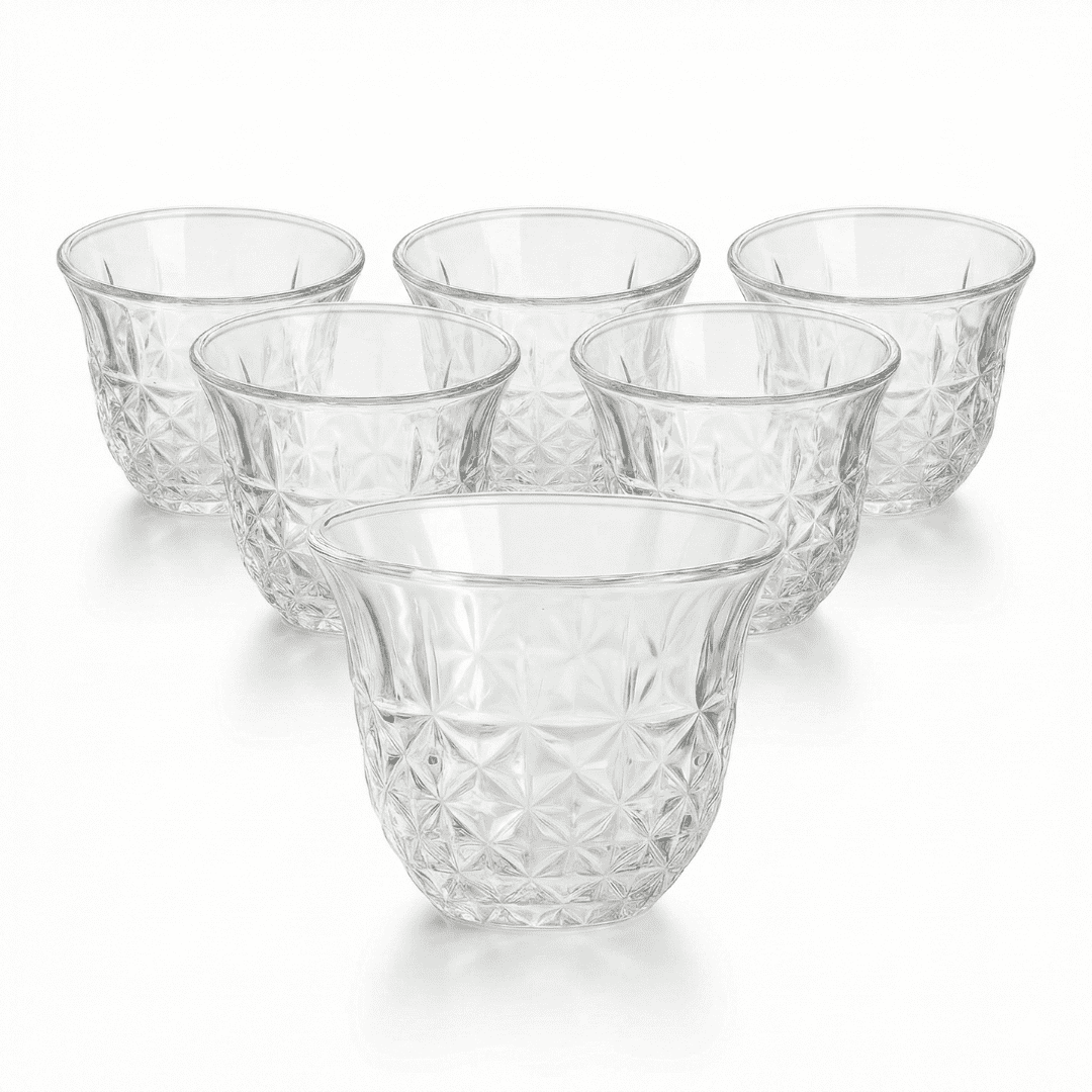 Elevate your coffee presentation with the Crystal Glass Coffee Cups. Crafted from premium heat-resistant borosilicate glass, this 6-piece set combines durability with lightweight elegance. Additionally, the transparent, handleless design offers a modern minimalist aesthetic that highlights the rich color of your Arabic or Turkish coffee. Finally, these Glass Coffee Cups are non-porous and easy to clean, ensuring a pure taste every time.