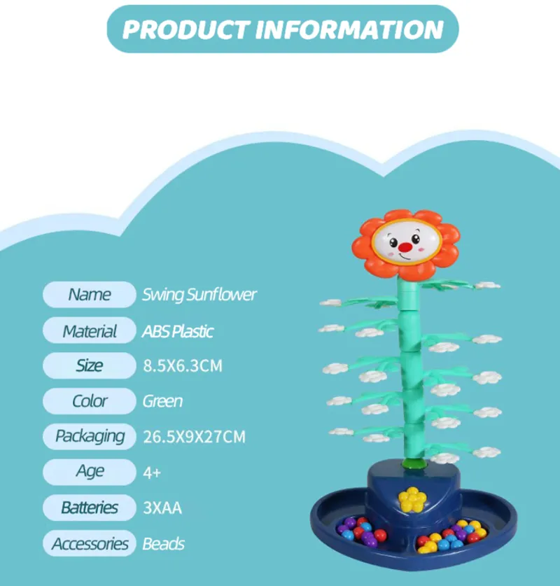 This Electric Swinging Sunflower Toy is designed to promote positive family dynamics. Furthermore, the interactive nature encourages meaningful Interaction between Parents and child, which will naturally increase their affection and emotion through shared, joyful play. Equipped with cheerful music, the shaking and dancing action keeps the energy high and the game exciting for everyone involved.
