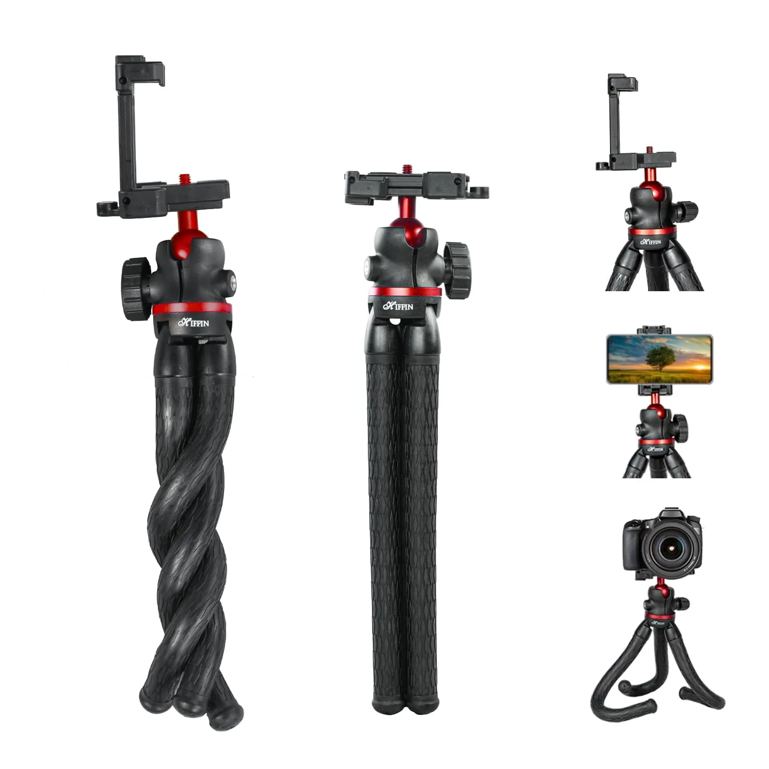A portable and lightweight design ensures that you can carry and use your mini tripod effortlessly throughout the day. In addition, ABS makes the mini tripod exceptionally lightweight and durable, perfect for a long day of gorillapod tripod shooting. Finally, this set is fully compatible with all types of CellPhones and Cameras, and includes a handy Mobile Attachment for seamless mounting of smartphones for Vlogging or Live Streaming.