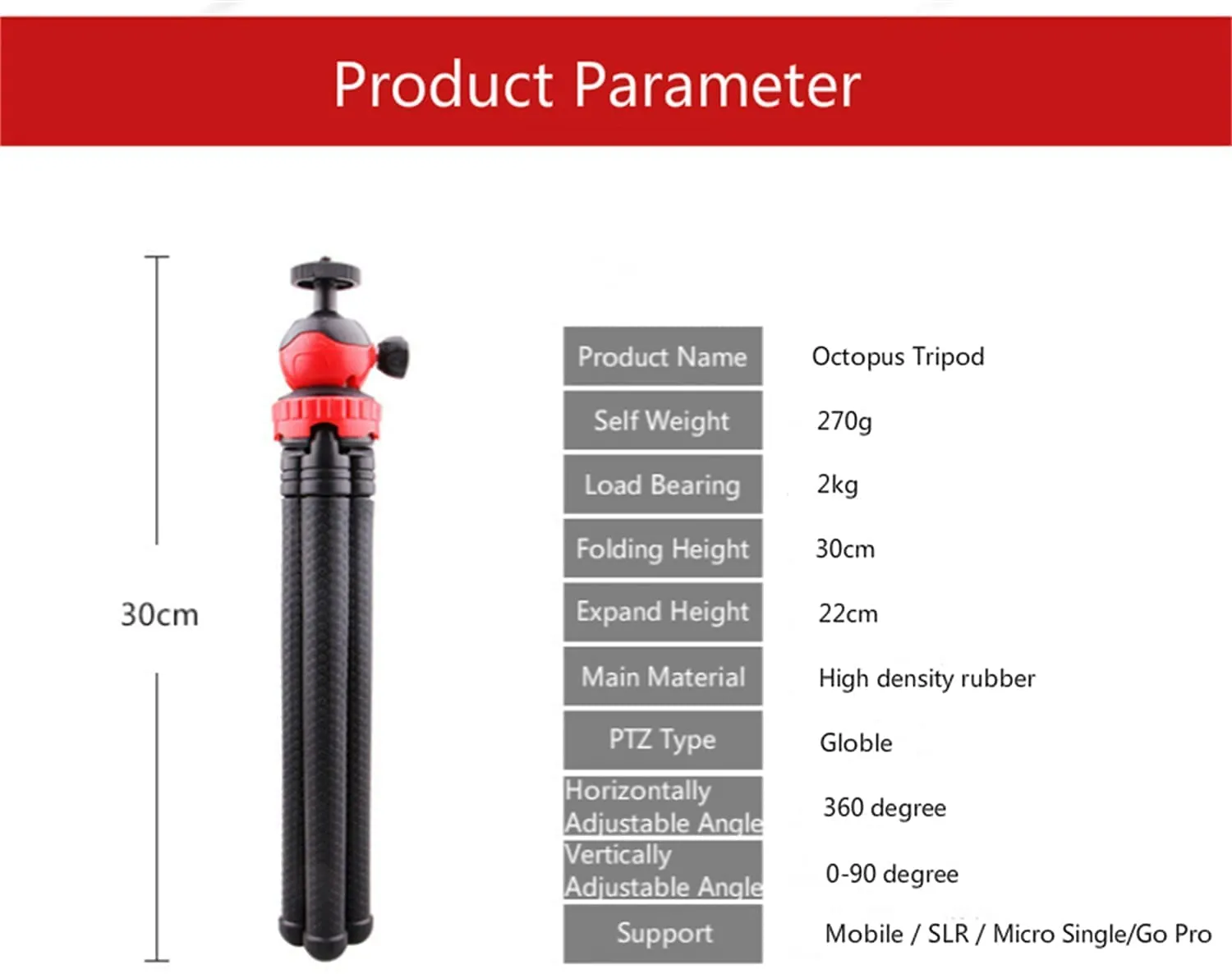 Product Type: Flexible/Octopus Tripod