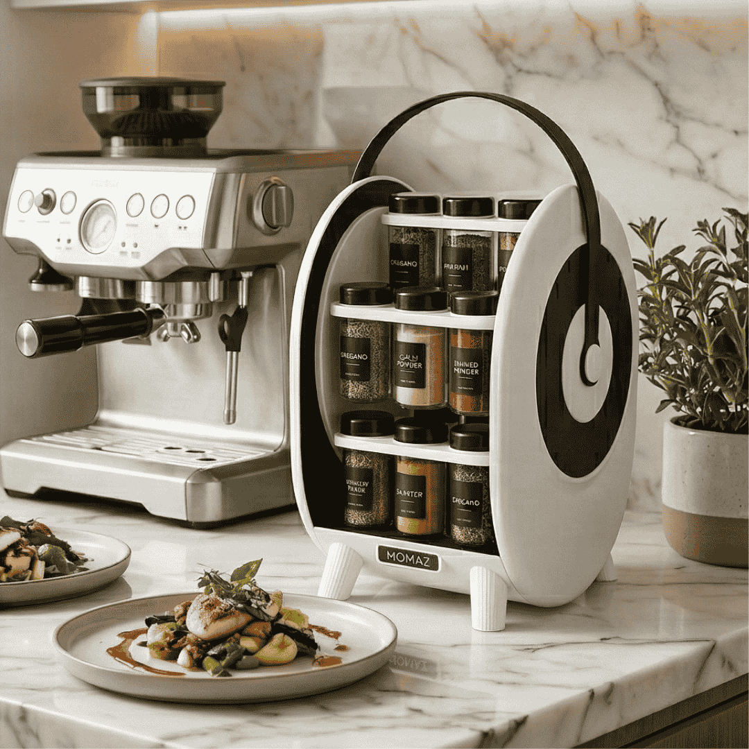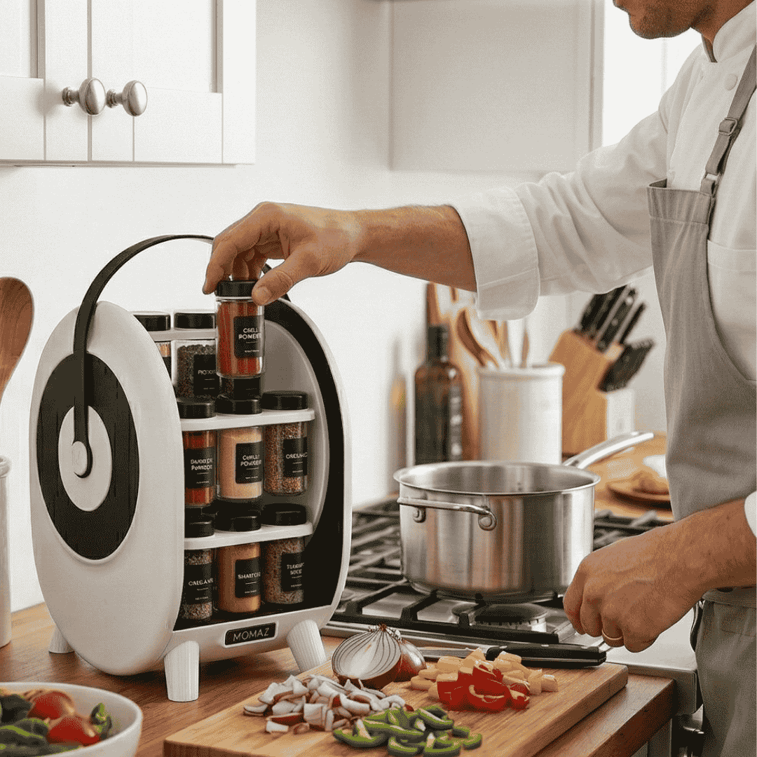 Organize your kitchen effortlessly with the Momaz Rotating Spice Rack. Whether you are cooking a complex curry, baking sweet treats, or simply seasoning a daily dinner, finding the right flavors quickly is essential. Because cluttered cabinets cause frustration, a smart storage solution is necessary. Therefore, this elegant 18-jar organizer keeps your favorite seasonings perfectly arranged and always within reach.