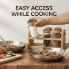 A cluttered kitchen counter makes cooking stressful. But, this set includes a durable, double-layered natural bamboo stand. Moreover, this smart, compact design makes the entire collection incredibly easy to organize and carry. Finally, to keep your entire cooking area spotless, pair this elegant set with our sleek Pantry Storage Bins.