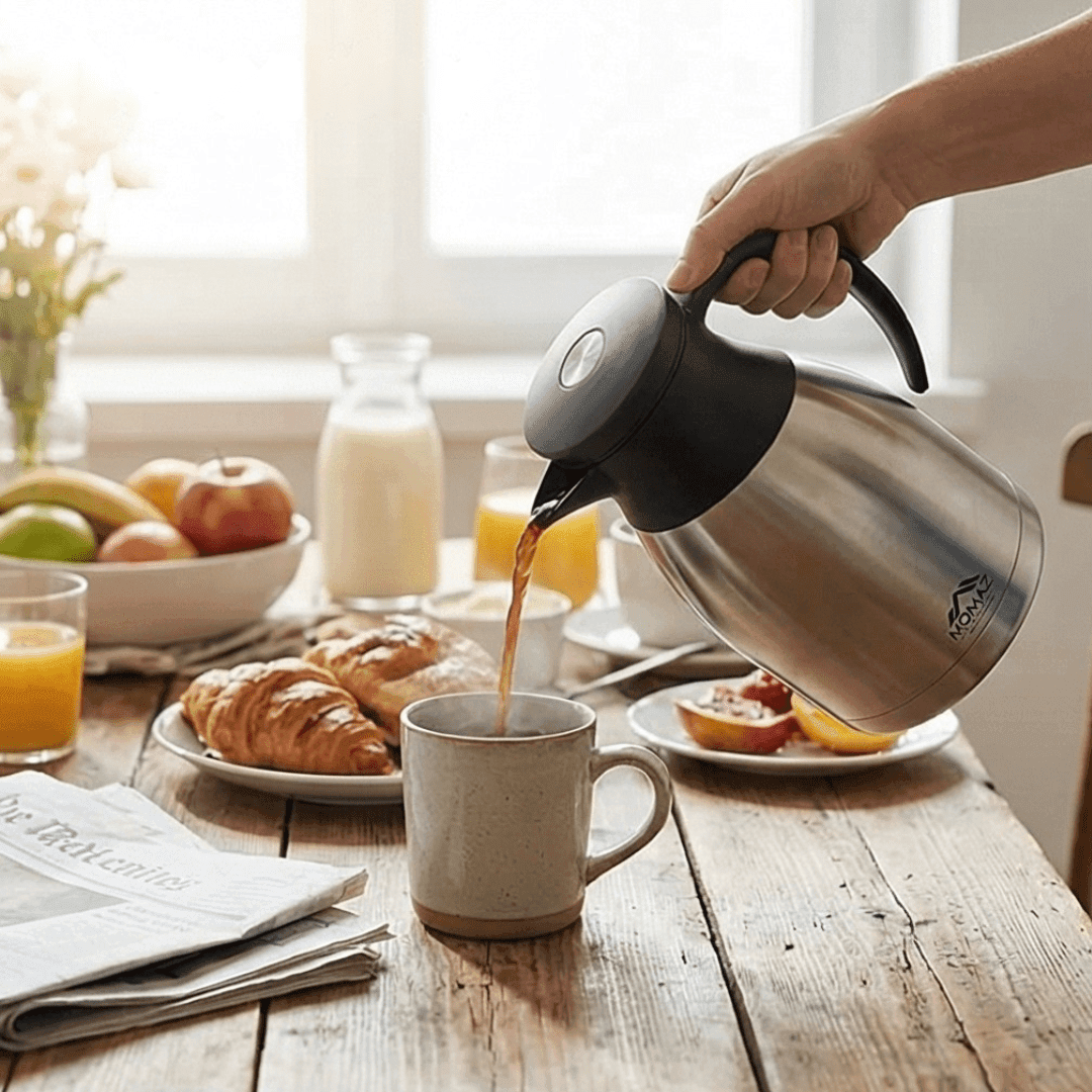 Serve your beverages at the perfect temperature with the Stainless Steel Vacuum Jug. Whether you are hosting a morning meeting, enjoying family breakfast, or relaxing after dinner, hot drinks are essential. Because standard pitchers lose heat rapidly, your coffee quickly becomes cold and unappealing. Therefore, this Momaz Berlin Series carafe offers an elegant, high-performance solution for your daily serving needs.