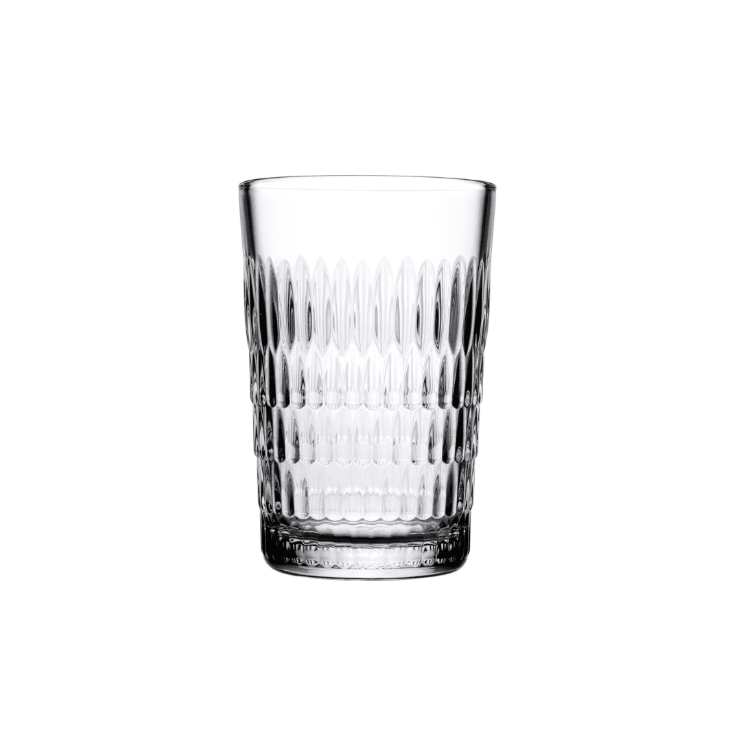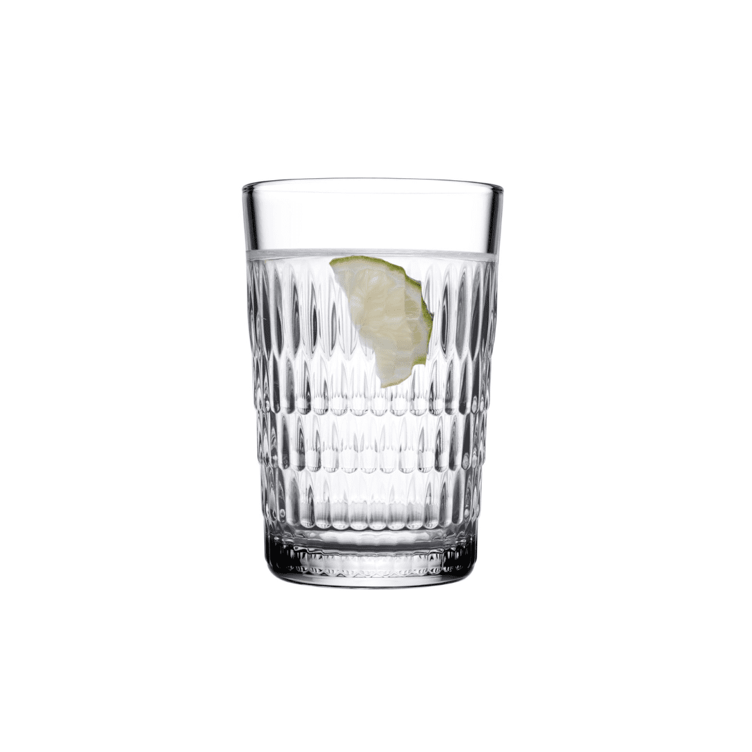 Furthermore, this Pasabahce Rain Set includes three specific sizes to meet various hydration and serving needs. The 350ml and 320ml glasses serve perfectly as highball vessels for sodas, iced teas, or mixed drinks. Similarly, the 250ml glasses work ideally for morning juices or smaller refreshments. The vertical ribbing adds structural strength to the glass while creating a timeless aesthetic. In addition, the balanced weight of each piece ensures that the glasses remain stable on flat surfaces to prevent accidental spills.