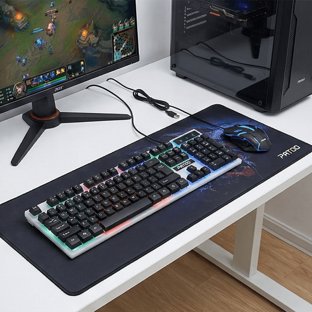 Upgrade your workspace aesthetics and performance with the Patoo KM800 LED Keyboard and Mouse Bundle. Whether you are battling enemies in a game or typing up a report for work, your peripherals define your experience. This set combines a compact yet functional 98-key layout with a high-precision mouse. It offers the perfect balance of style, comfort, and durability for both gamers and professionals.