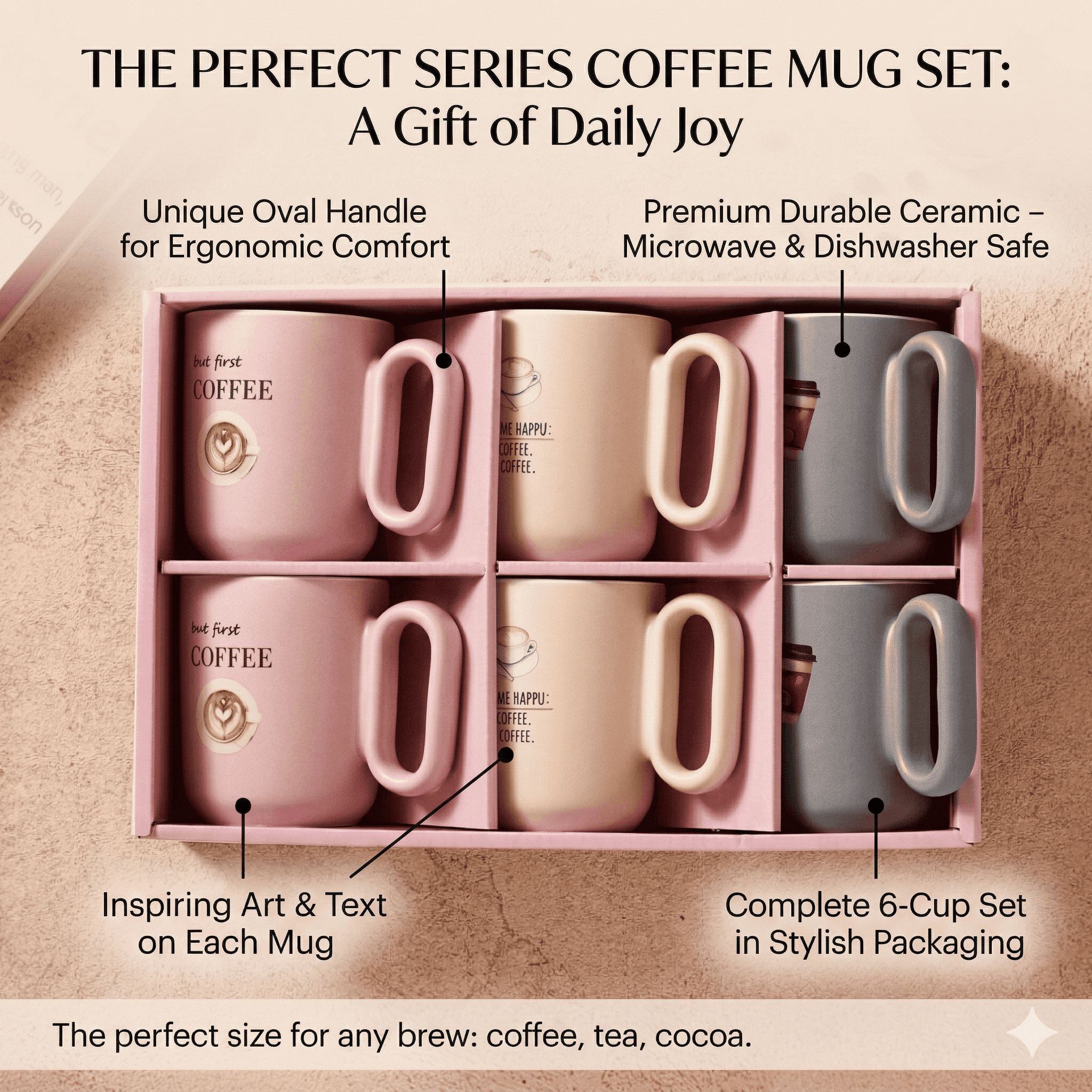 Enjoy your morning brew with the beautiful Coffee Mug Set. Whether you are drinking tea, making hot chocolate, or serving guests, having a stylish cup is essential. Because mismatched drinkware looks messy, upgrading to a matching collection is a smart choice. Therefore, this 6-piece Perfect Series bundle brings a cozy, modern touch to your daily routine instantly.