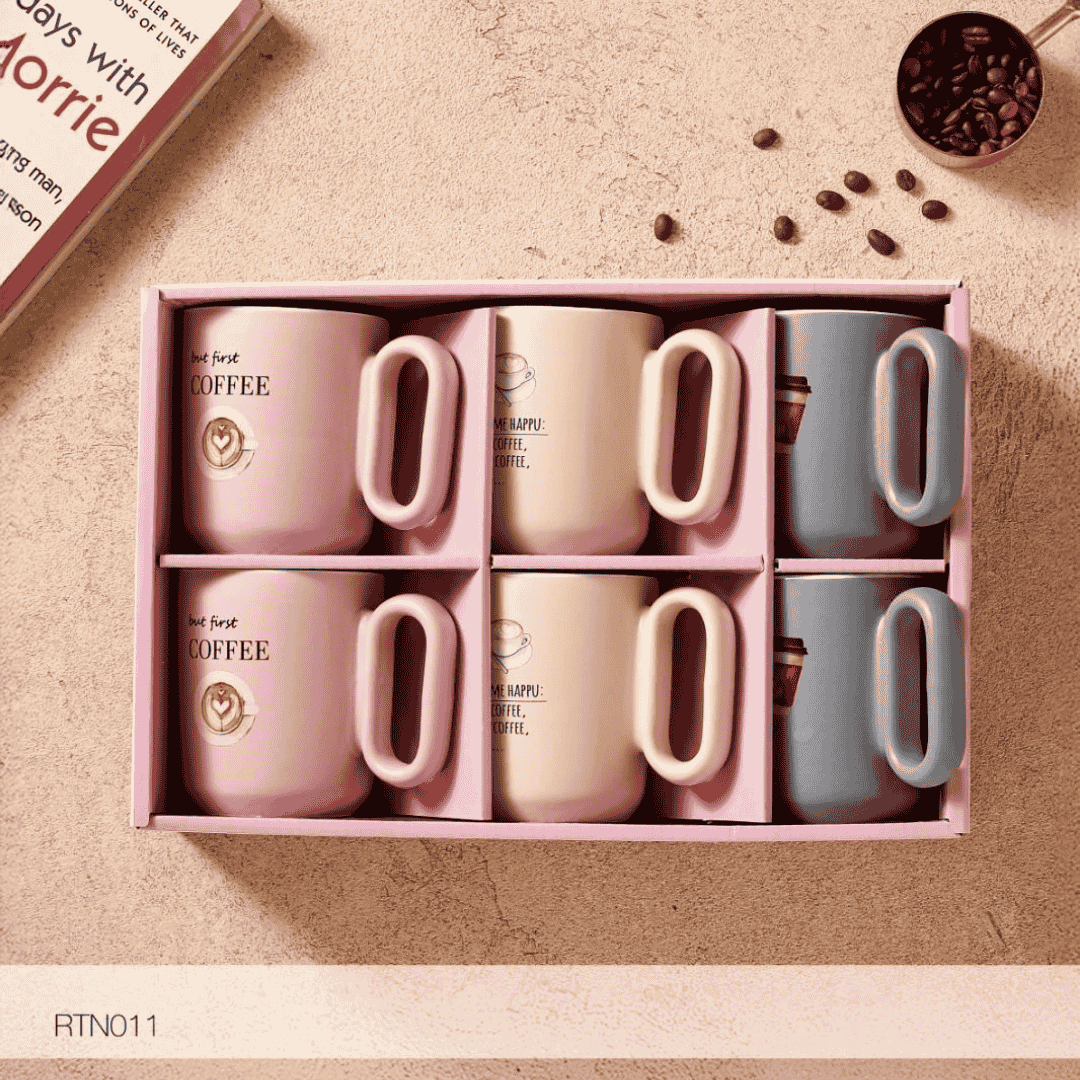 Boring plain cups do not stand out in a modern kitchen. Fortunately, this elegant collection features soft pastel colors including pink, beige, and grey. Consequently, they match your contemporary home decor perfectly. In addition, each cup displays stylish coffee-inspired prints for a highly decorative look. Unlike standard glassware, these charming pieces brighten up your morning mood effortlessly.