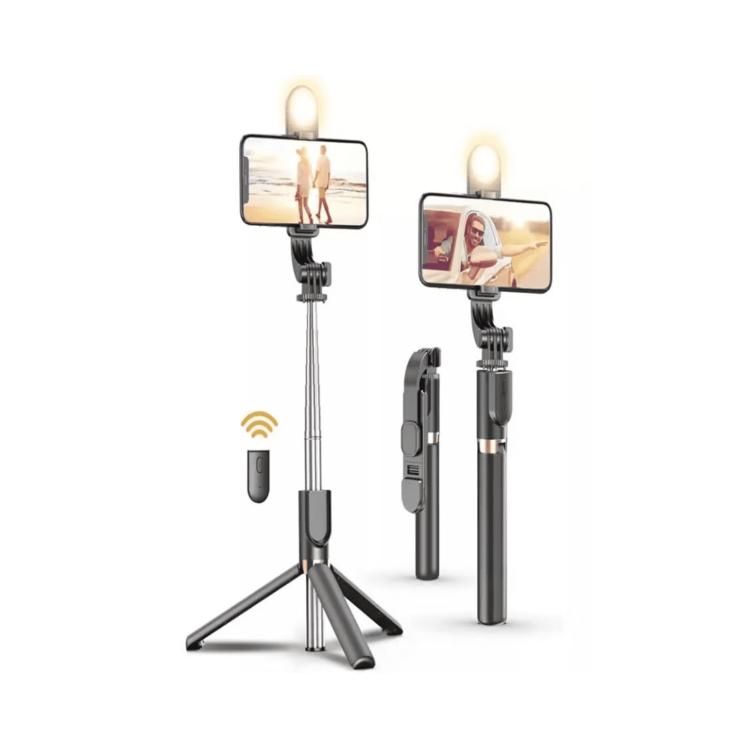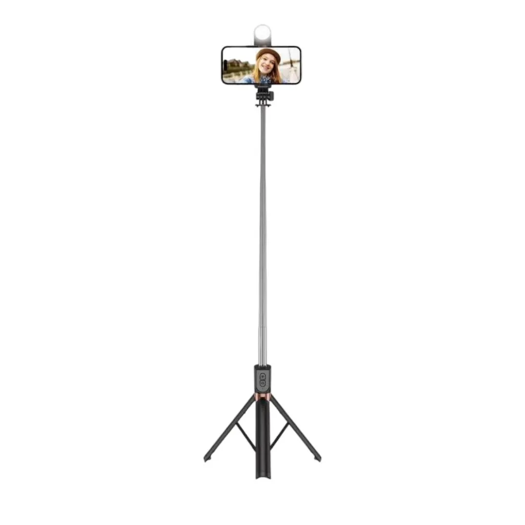 Furthermore, this multi-functional tool includes a built-in LED light to enhance video quality. This adjustable light provides the perfect illumination for vlogging or video calls in dim environments. Similarly, the integrated wireless remote control allows for easy, hands-free operation from a distance. Moreover, the 3-in-1 design enables the device to function as a handheld selfie stick, a standalone tripod, or a simple phone holder for desk use.