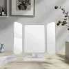 This rechargeable LED cosmetic mirror is a sleek and functional addition to any vanity or dressing table. Featuring a three-sided folding design, it offers multiple viewing angles for precise makeup application and grooming.
