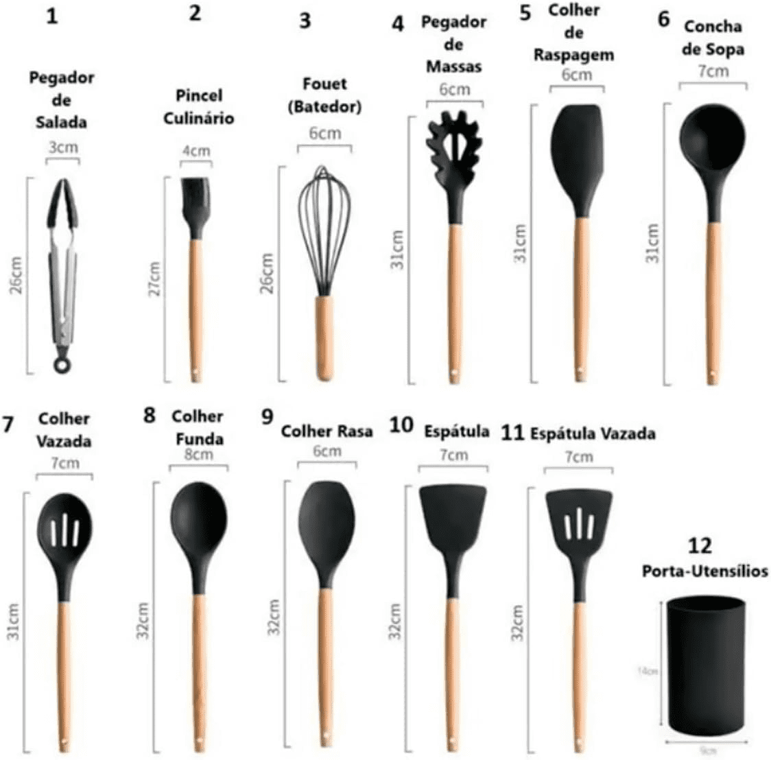 Set Includes: Spatula, ladle, whisk, slotted spoon, pasta server, and more