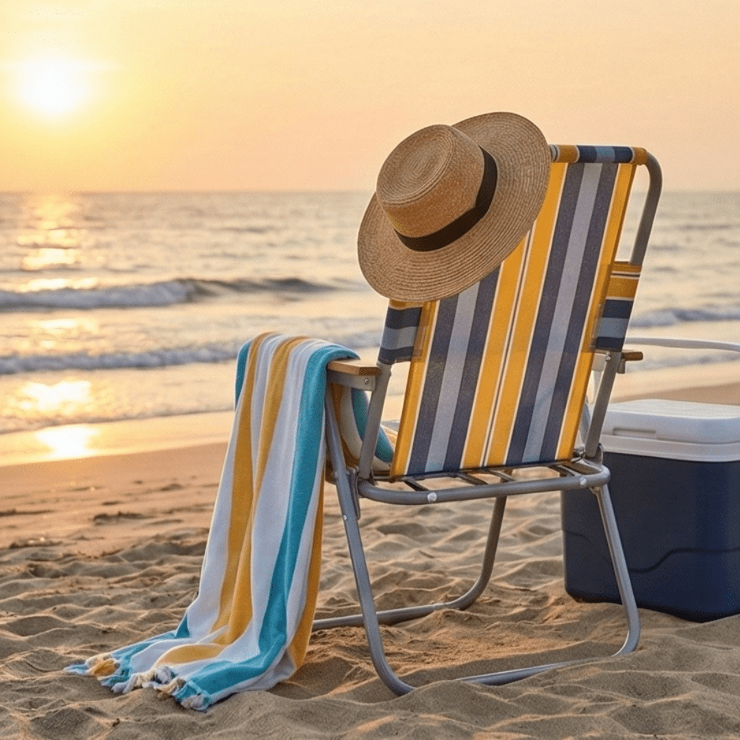 Outdoor equipment must be tough. In contrast to flimsy alternatives, this seat is built to last. The blue and yellow fabric is resistant to wear and tear. Additionally, the metal frame provides a stable base on uneven ground like grass or sand. Finally, to complete your colorful set, check out our Travel and Outdoor products