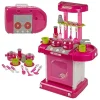 Everything in this Super Kitchen Play Set is designed to mimic a real kitchen. We integrated light and sound effects to make the game even more realistic. Furthermore, turning on the burners activates a backlight that simulates the operation of an electric stove, while the sounds simulate boiling and working oven mechanisms. This detailed realism allows the child to try themselves in different roles, for example, to be a caring mom or try on the profession of a master cook.